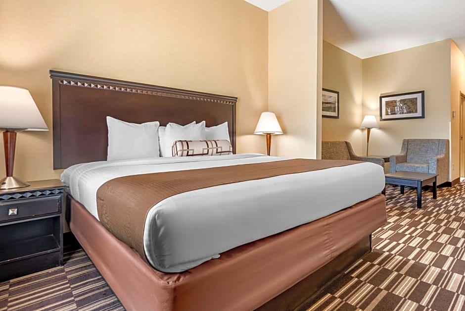 The hotel offers a range of amenities to ensure a comfortable stay. Start your day off right with a complimentary breakfast before taking a dip in the indoor swimming pool or relaxing in the spa tub. Stay connected with free WiFi, get in a workout at the fitness center, and take advantage of the 24-hour front desk for any assistance you may need. The Best Western PLUS also offers complimentary parking, making it easy for guests to explore the surrounding area.